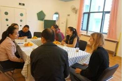 中午时分,乔安娜又不辞辛苦,结合幼儿工作实景与老师们在会议室进行了座谈,老师们也就在工作中遇到的难题和困惑向她进行了求解。现场互动积极,答疑解惑有效。通过交流与研讨,解决了老师们在区域活动指导中的疑难和困惑。在轻松愉快的氛围中,老师们也理清了在蒙氏工作中的操作思路。