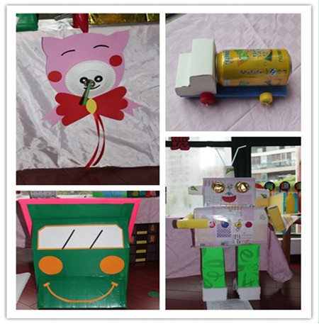 日常生活中,总有许多废旧品被我们随手抛弃。如果把废品变废为宝,利用废旧品制作幼儿的玩教具,不仅可以节约玩教具制作成本,还可以潜移默化的增强孩子们的环保意识。9月24日,华大家园的老师们进行了废旧物品制作玩教具创意制作大赛。