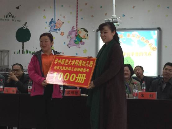 协议签订后,华师幼儿园向民族幼儿园捐献了1000册图书,并做了题为《在园本课程构建中创造教学幸福》和《幼儿园绘画活动的设计与指导》的专题讲座。