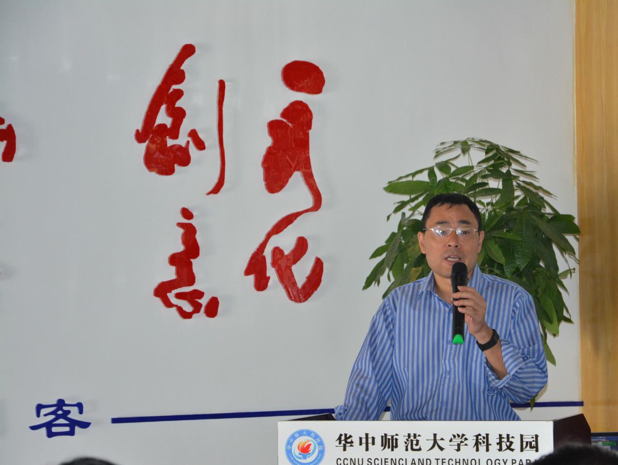 湖北省科技厅协调办赵东处长代表湖北省科技厅致辞,赵东处长阐明了“大众创业万众创新”的重要意义,解答了湖北省科技厅扶持创新创业的优惠政策,对华师科技园近五年来在文化创意产业发展和扶持创新创业取得的成绩给予了充分肯定,期待华师科技园和创客们勇于创新、坚持创新,充分利用“互联网+”创新技术和发展思路,整合资源,努力为湖北创新创业事业做出新的成就。