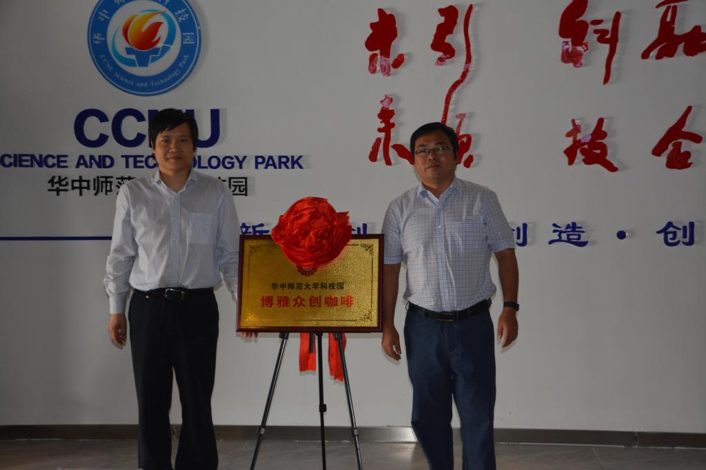武汉市科技局政策法制处石柏林处长和东湖开发区科创局钟复平副局长共同为“华中师范大学科技园博雅众创咖啡”创新型孵化器揭牌,宣告华师科技园博雅众创咖啡建设落成并正式启用。博雅众创咖啡是华师科技园为响应“大众创业万众创新”号召,专门针对“创客”创建的集创业培训、创业指导、创业交流、投融资对接等功能一体的创新型孵化器,博雅众创咖啡的落成将进一步完善华师科技园科技创业服务体系。