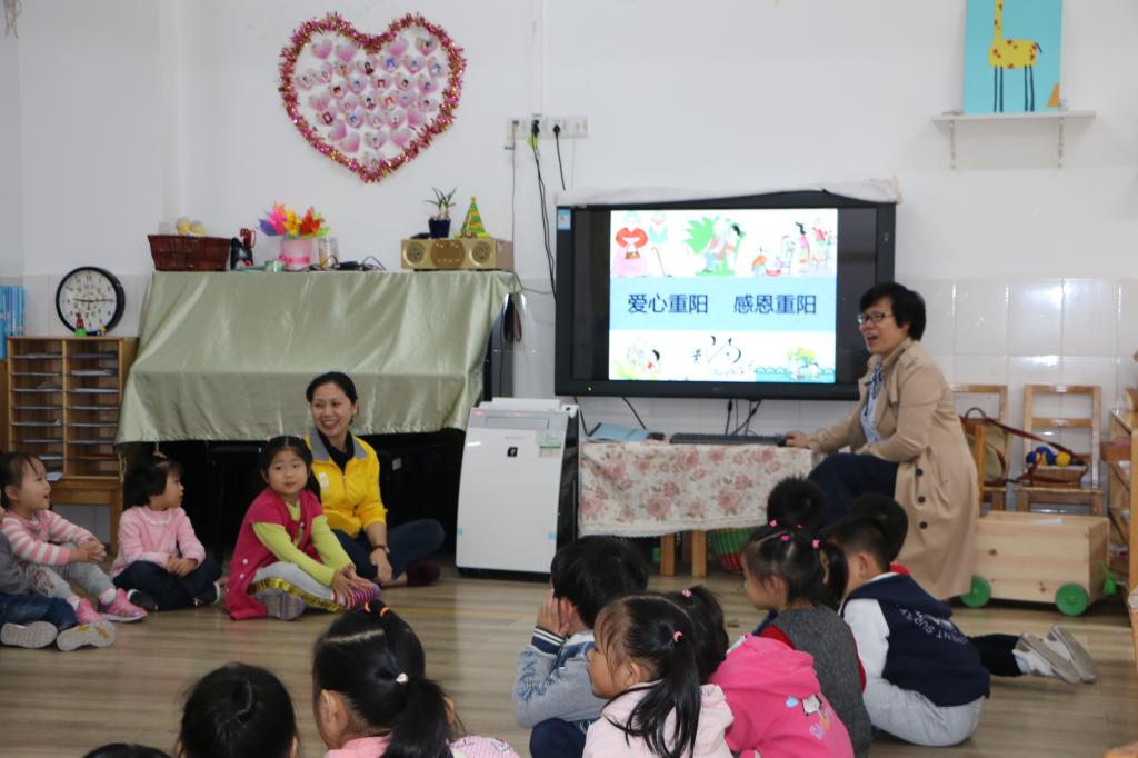 活动第一幕:了解重阳节。借助绘本、PPT、影片、家长进课堂等多种授课形式向孩子们讲述重阳节的由来及习俗,让孩子们在了解中国传统文化的同时也感受祖辈们的养育之恩。