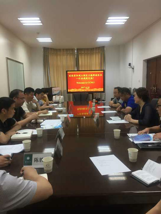 参观结束后,双方在工程中心四楼会议上进行了座谈交流。盘华代表学校及资产公司对王晓辉一行的到来表示了热烈欢迎,介绍了我校的战略规划及资产公司的发展定位,并希望通过双方的合作,共同推动观山湖区教育事业发展。