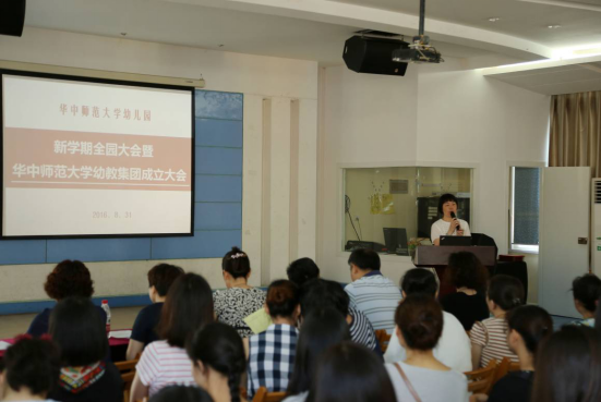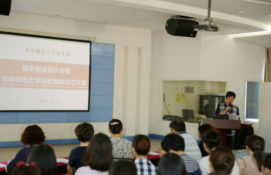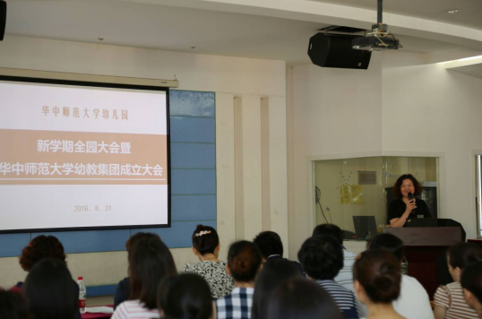 首先,总经理盘华宣布华中师范大学幼教集团成立,并介绍幼教集团的成立概况。