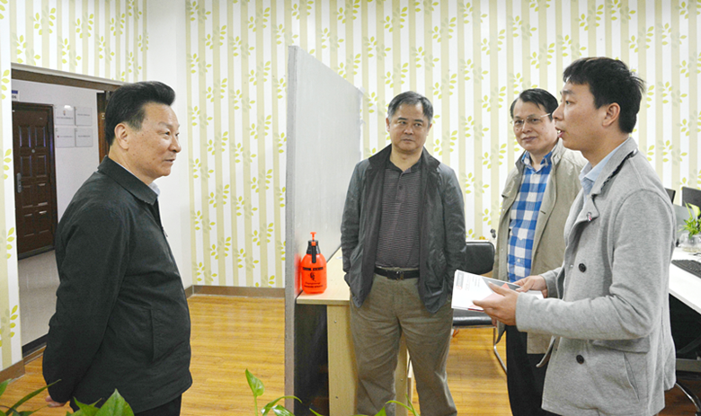 在资产经营管理有限公司党委书记曾浩、华师科技园总经理石炜陪同下,赵斌一行先后考察了华师科技园武汉览山科技有限公司和湖北思拜尔信息技术有限公司。