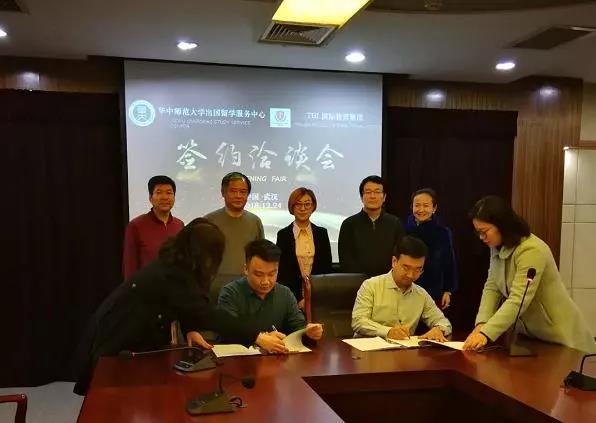 随后,在双方领导嘉宾的见证下,胡慧洁与刘恋完成了合作协议的签署,双方将在华中师范大学校内联合开设包括国际高中预备课程在内的多种国际教育项目。