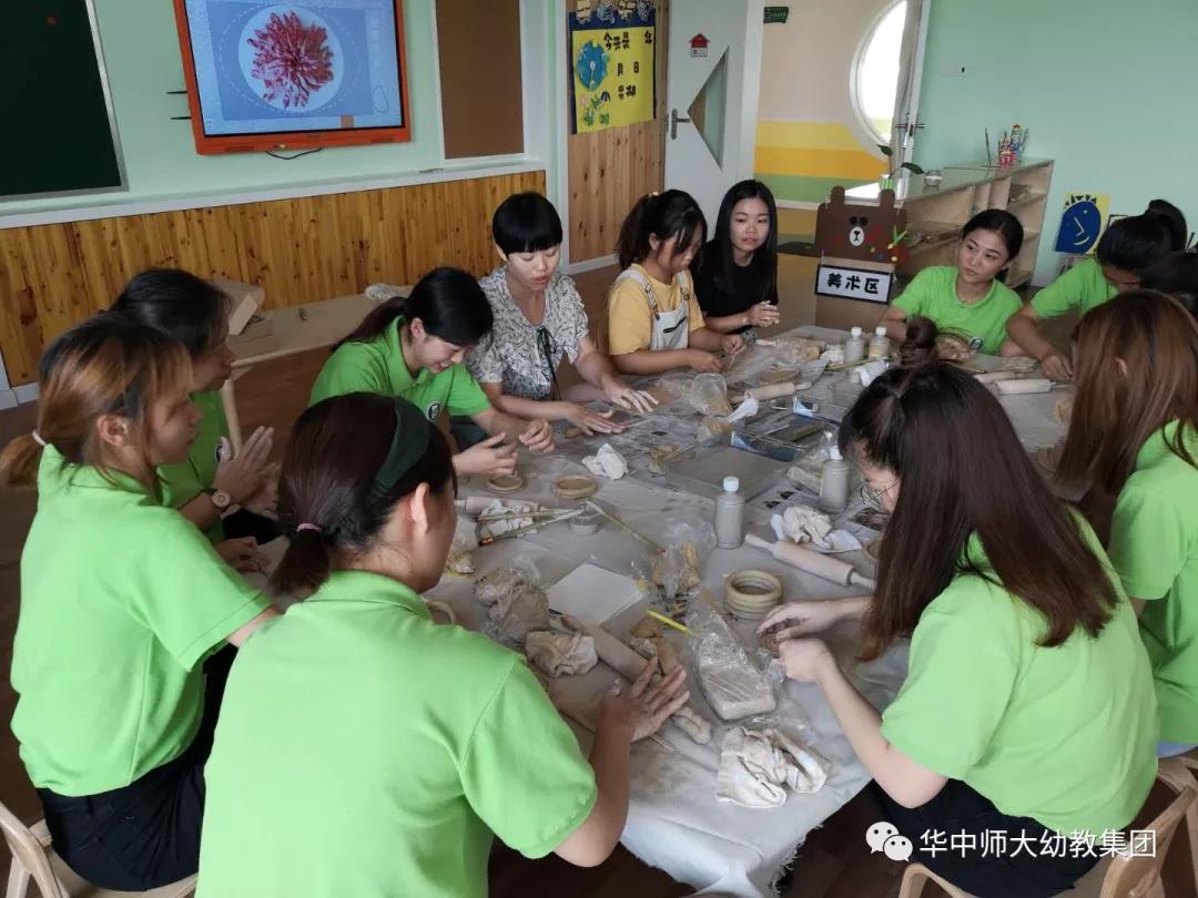 探索、实践、研究,立足华师文化,整合学校资源,为引领合办园教师进一步理解“艺术沁心”的特色理念,更为科学有效地开展教育教学工作,2018年盛夏7月,华师幼儿园的美术专职教师分别为华师附属黄梅梦想城幼儿园和华师附属斯迪姆幼儿园开展了艺术特色课程的实施与指导活动。