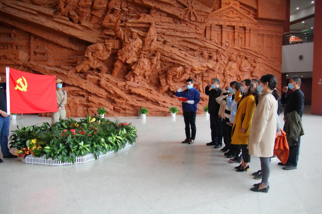 近2个小时的参观结束后,全体党员齐聚于博物馆一楼大厅,在党旗面前庄严地举起右拳,公司党委委员、总经理曹青林同志带领大家重温了入党誓词。
