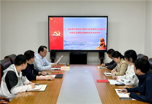 石炜传达领学了学校学习贯彻习近平新时代中国特色社会主义思想主题教育动员大会精神。