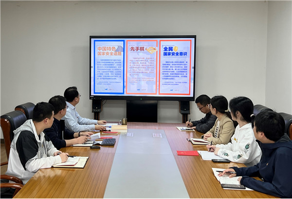 支部委员陈煜挺同志通过“中国特色国家安全道路”、“全民国家安全意识”、“国家安全体系”等八个关键词学习分享习近平总书记国家安全“公开课”,支部全体党员集中观看2023年第八个全民国家安全教育宣传视频,认真学习习近平总书记关于国家安全的重要论述精神。