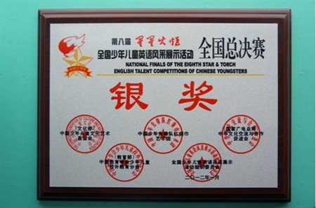 1月29日,由团中央、全国少工委、文化部、教育部和国家广电总局等单位联合举办的第八届“星星火炬”全国少儿英语风采总决赛在北京拉开赛事,幼儿园大一班孩子表演的童话剧《十个印第安人》荣获学前组集体银奖。