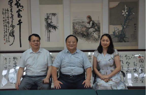 石炜总经理在华师科技园中国书画艺术研究院与唐翼明教授亲切交谈,唐翼明教授对华师科技园致力发展文化科技创意产业所取得的成就表示赞赏,他与石炜总经理及华师科技园中国书画艺术研究院工作人员纵论其国学研究成果,对《魏晋文学与玄学》、《唐翼明解读<颜氏家训>》等其著作背景作出详细解读与介绍;唐翼明教授还与大家分享了他的书法研究与创作心得体会。