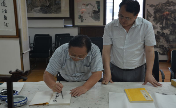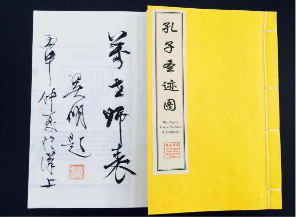 唐翼明教授和石炜总经理视弘扬中国优秀传统文化为己任,为振兴并传承中国书画艺术事业,双方就中国优秀传统文化交流、中国书画艺术研究合作事宜达成共识。唐翼明教授提笔挥毫,欣然为华师科技园中国书画艺术研究院的藏书《孔子圣迹图》题字签名以示纪念 。