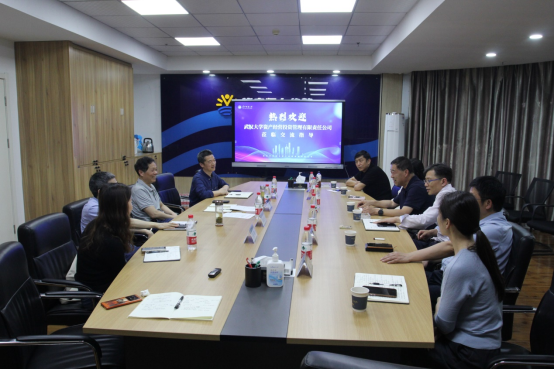 王中对武汉大学资产经营公司的来访表示热烈欢迎,并详细介绍了我校产业概况、公司架构、所属企业管理情况、科技成果转化及未来产业规划等内容。