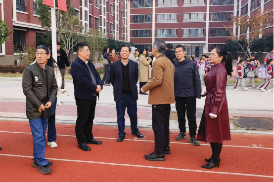 随后,大家一行来到华师临空港实验学校进行了参观交流。高圣奉校长向大家介绍了临空港实验学校的办学历程和办学理念,并对今后的办学发展方向进行了展望。他还就学校不断完善管理机制、推进教育改革、深入课题研究、重视建设师资队伍,促进教育质量提升的做法进行了具体介绍。