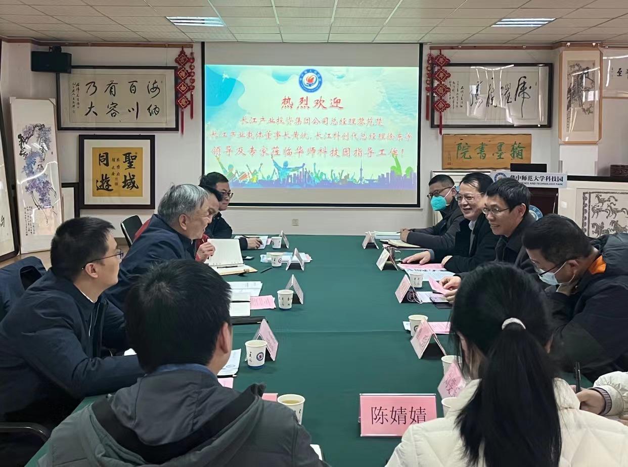 12月11日,长江产业投资集团有限公司党委副书记、总经理黎苑楚等一行赴华师科技园考察调研,与副校长李鸿飞及华师科技园负责人等进行座谈,共商合作,共谋发展。