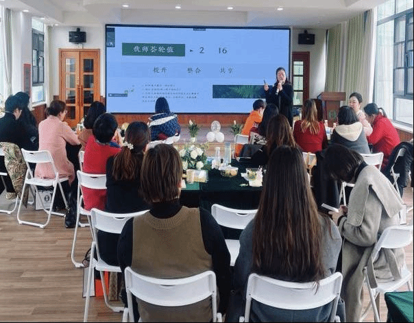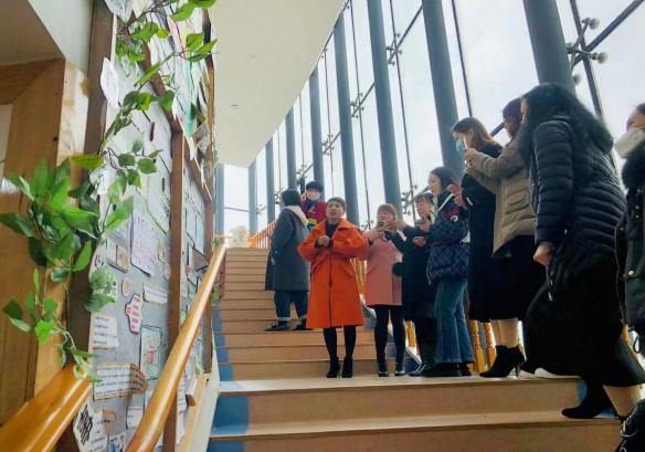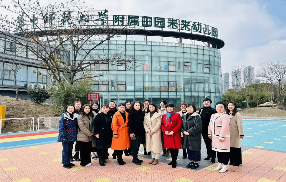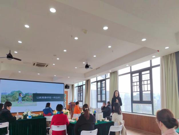 附属田园未来幼儿园行政园长许霈斐带领大家参观园所,详细介绍了幼儿园的园林式环境。教学园长谈洁向大家分享和汇报了本园优秀教学案例与主题课程。
