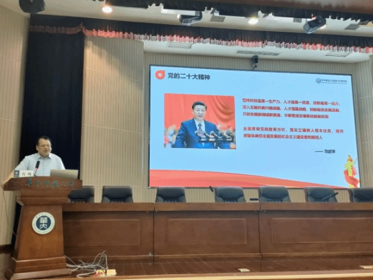 石炜领学了习近平总书记关于“坚持科技是第一生产力、人才是第一资源、创新是第一动力,深入实施科教兴国战略、人才强国战略、创新驱动发展战略,开辟发展新领域新赛道,不断塑造发展新动能新优势”的重要讲话精神和党的二十大精神,介绍了国务院和国家教育部支持大学生创新创业的宏观环境。