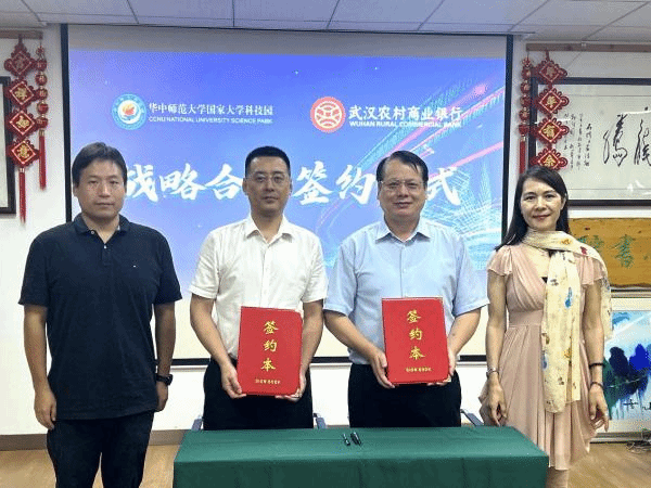 在武汉市科技局赵珏、祝志华及与会嘉宾代表们的共同见证下,华师科技园总经理石炜与武汉农村商业银行光谷分行副行长肖俊签署《战略合作协议》,标志着华师科技园与武汉农村商业银行正式达成战略合作,双方将在投贷联动、金融支持等方面为华师科技园园区企业提供特色化科技金融服务。