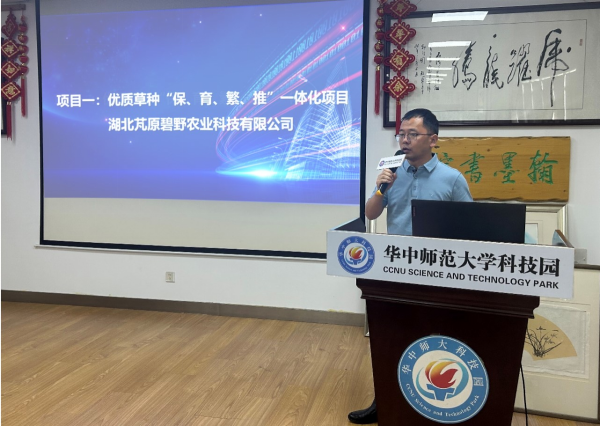 湖北芃原碧野农业科技有限公司创始人刘致浩博士做“优质草种‘保、育、繁、推’一体化”项目路演