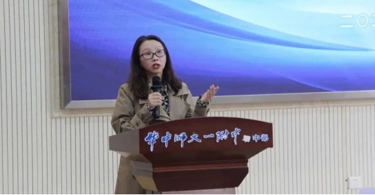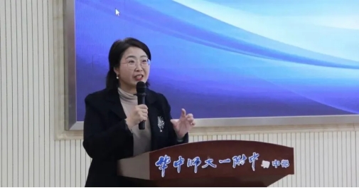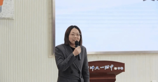 光谷未来学校教学副校长兼九年级主任夏金艳作关于尖子生、临界生年级培养策略的交流研讨。她结合其自身经历和初中生发展特点,分享了学校“一班一策、一生一案”的培养方法。