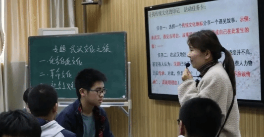 武汉光谷未来学校的万玉丽老师带来题为《武汉文化之旅》的复习备考课。课堂以武汉发展史视频作为导入,引发了同学们的热烈讨论,以寻找传统文化的印记、追随革命先烈的足迹、价值引领促文化繁荣贯穿课堂教学,引导同学们思考文化传承的必要性。