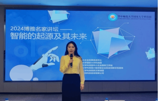 (华师科技园 金瑜讯)6月13日,华师科技园2024年首期博雅名家讲坛在IF空间开讲,活动特邀武汉大学计算机学院博士生导师、中国人工智能学会心智计算专委会副主任委员、中国移动通信联合会元宇宙产业委员会副主任委员蔡恒进教授作“智能的起源及其未来”专题报告,华师科技园园区内外300余名企业代表参加,活动由华师科技园办公室主任叶旋主持。