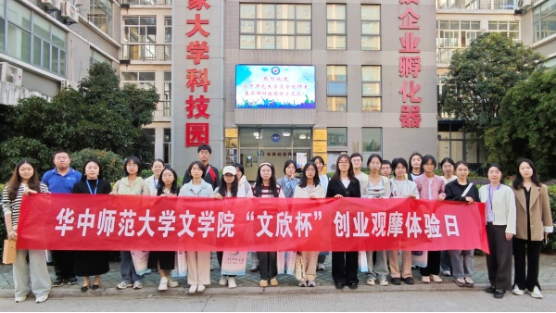 (华师科技园 刘雯玉讯)10月31日,华中师范大学文学院团委副书记杨心怡带领文学院在校大学生一行20余人来访华师科技园,开展华中师范大学文学院“文欣杯”创业观摩体验日活动。