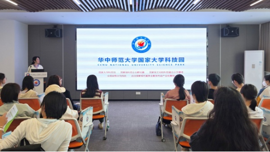 在华师科技园IF空间,观摩团集中观看了华中师范大学国家大学科技园宣传片《炬火》,华师科技园企业服务中心副主任陈婧婧介绍了华师科技园建设发展情况,重点说明了华师科技园服务学校学科建设和人才培养,促进学校科技成果在园区落地、转化及产业化,服务学校师生创新创业的经验做法和阶段性成效,增进了大家对华师科技园和科技企业孵化的理解和认识。