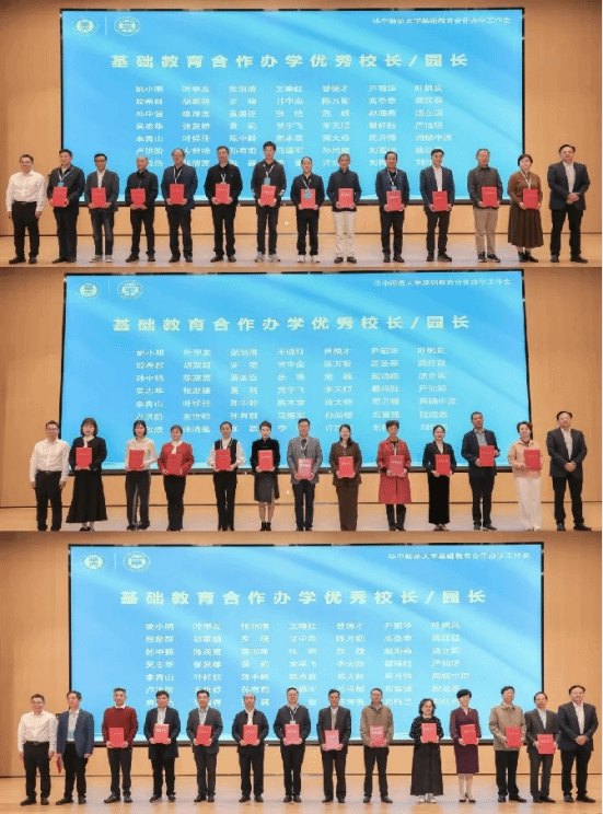 华中师范大学副校长李鸿飞、周鹏程为2023学年度华中师范大学合作办学平台49名优秀校长、副校长和园长颁奖。