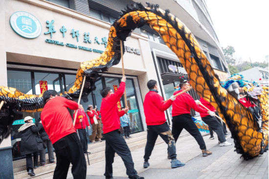 (留服中心 余亭欧讯)金龙献瑞迎福至,醒狮欢腾贺春来。为传承中华优秀传统文化,庆祝元宵佳节,华中师范大学于2月12日(农历正月十五)上午举行了“蛇年龙狮闹元宵”大型巡演活动。此次巡演由校友工作办公室、校工会、体育学院、大学生体育(健康)教育中心联合主办。资产公司是本次巡演的重要站点。