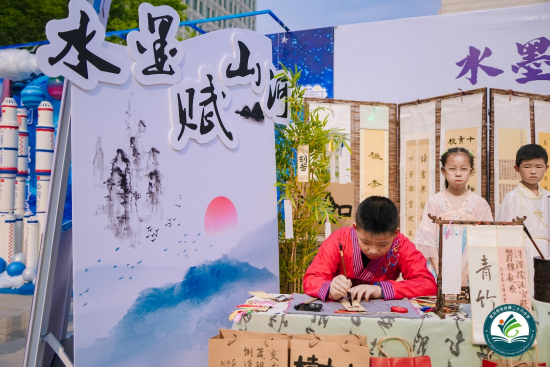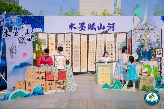 活动伊始,来宾们驻足“十年风华”成果展区。墨香氤氲处,“水墨赋山河”展位的小书法家挥毫泼墨,古琴曲《渔舟唱晚》的清音流淌;“匠心刻时光”展区非遗团扇与生态贴画相映成趣,展现传统文化与生态教育的完美融合;“科创绘未来”展台前,3D打印机、智能机器狗和无人机编队表演,勾勒出未来教育的创新图景。