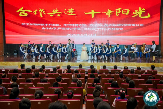 (教育集团 吴涛泽 陈智慧讯)湖光潋滟秋色好,十年耕耘满庭芳。5月24日上午,华中师范大学附属严西湖小学合作办学十年工作总结大会在东湖高新区管委会八号楼报告厅隆重举行。华中师范大学党委常委、副校长刘宏达,东湖高新区党工委委员、党政办公室主任潘青煜,花山生态新城投资有限公司总经理张磊,东湖高新区教育局党委书记、局长向华等领导嘉宾与师生代表共襄教育盛典,见证十年教育硕果。