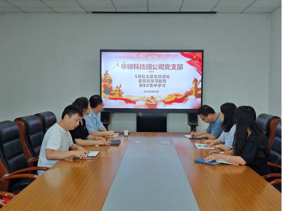 (华师科技园 陈昕讯)为学习贯彻习近平新时代中国特色社会主义思想主题教育,落实华中师范大学校党委和资产公司党委工作部署要求,6月25日下午,在华师科技园公司会议室,支部书记石炜同志主持召开以“华师科技园党纪学习教育第5次党员集中学习”为主题的2024年6份支部主题党日活动。