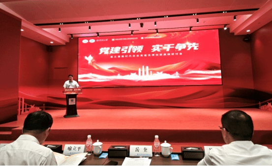 (华师科技园 刘雯玉讯)为了庆祝中国共产党成立103周年,深入学习贯彻党的二十大精神,深入推动企业党建研究,推动企业党建向高质量发展,2024年6月30日下午,在中建三局三公司雷霆大讲堂,华中科技大学马克思主义学院、华中科技大学数智党建研究中心和中建三局三公司联合举办“新时代企业党建优秀创新案例研讨会”。湖北省人大常委、省人大教科文卫委员会副主任喻立平教授,新华社湖北分社副总编辑梁建强,湖北日报社副总编辑张晓峰,光明日报社湖北记者站站长王建宏,华中科技大学马克思主义学院院长岳奎,华科马院党委副书记、副院长王明飞,中建三局三公司党委副书记梅乐峰,湖北联投城市运营有限公司党委委员、副总经理杜登科,武汉华中师大科技园发展有限公司党支部书记、总经理石炜等领导嘉宾出席会议。会议由华中科技大学马克思主义学院院长岳奎主持。