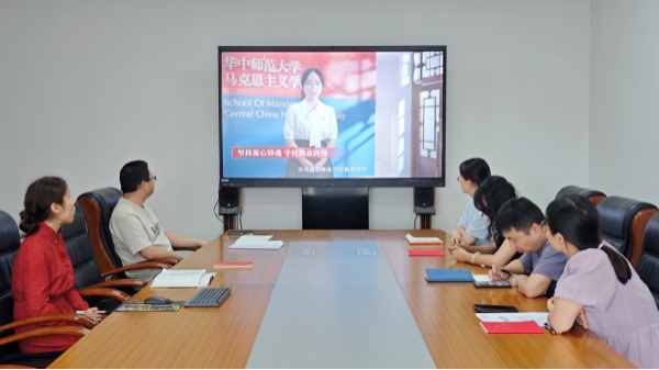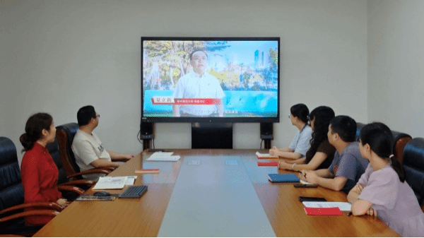 鲁明同志带领华师科技园全体党员共同学习由校党委书记夏立新,马克思主义学院党委副书记、院长毛华兵,马克思主义学院学生党员田小丫以“坚守意识形态阵地凝聚磅礴奋进力量”为主题为全国高校师生带来的示范微党课。