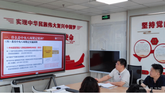 在主题党日学习环节,五位党员同志分别围绕习近平总书记在中共中央政治局第二十次集体学习时的重要讲话精神、深入贯彻中央八项规定精神学习教育及《党政机关厉行节约反对浪费条例》等内容展开领学,结合工作实际,深入解读政策内涵,分析政策对企业发展的指导意义。